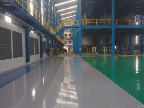 Sơn nền bằng sơn epoxy có nhiều ưu điểm cao. Nhà xưởng thưởng xuyên tiếp xúc với hoá chất va chạm với máy móc và người lao động di chuyên thường xuyên. Nhưng vấn đề đó đã được son epoxy khắc phục. Các nhà doanh nghiệp lựa chọn son epoxy rất nhiều trong xây dựng nhà xưởng. sơn nền bằng sơn epoxy giúp nền nhà xưởng chống được va đập cao, chịu lực tốt, kháng hoá chất và đặc biệt là có tính thẩm mỹ cao. sơn nền bằng sơn epoxy giúp nhà xưởng rất sáng.